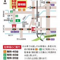 ②以外の駐車場は無料駐車場です。②の駐車場においても10月19日より11月27日までの間、祈祷受付の折に領収書を提示いただきましたら、1祈祷につき1台分の駐車料金を返金いたします。   …