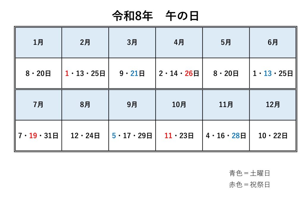 令和8年 午の日一覧
